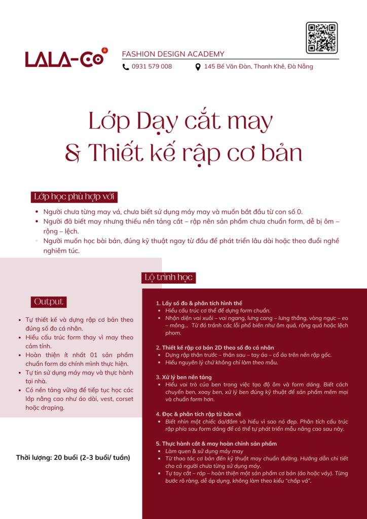 Nếu bạn đang tìm một lớp cắt may cơ bản tại Đà Nẵng để bắt đầu từ con số 0, hoặc bạn đã biết may nhưng vẫn loay hoay vì sản phẩm chưa chuẩn form, thì khóa học này được xây dựng dành riêng cho bạn.