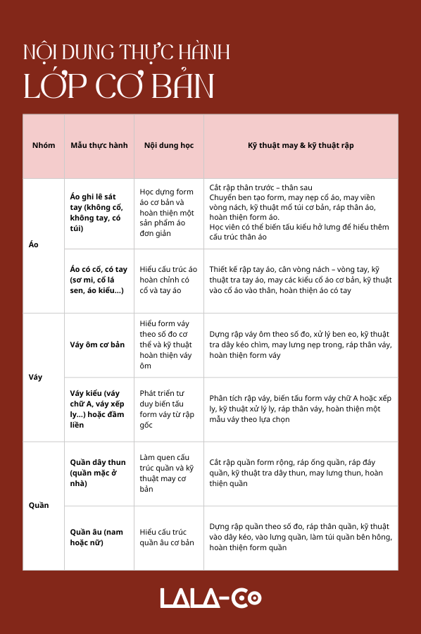 Tại LALA không dạy may theo cảm tính hay làm theo mẫu có sẵn, mà bắt đầu từ nền tảng quan trọng nhất: hiểu cơ thể, hiểu cấu trúc rập và hiểu vì sao một sản phẩm có form đẹp.